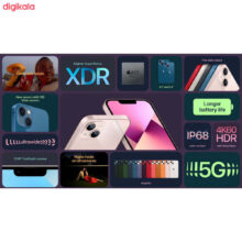 گوشی موبایل «iPhone 13» پرچمدار جدید شرکت اپل است که با چند ویژگی جدید و دوربین دوگانه روانه بازار شده است. اپل برای ویژگیها و طراحی کلی این گوشی از همان فرمول چند سال اخیرش استفاده کرده است. نمایشگر آیفون 13 به پنل Super Retina مجهز شده است تا تصاویر بسیار مطلوبی را به کاربر عرضه کند. این نمایشگر رزولوشن بسیار بالایی دارد؛ بهطوریکه در اندازهی 6.1 اینچیاش، حدود 460 پیکسل را در هر اینچ جا داده است. امکان شارژ بیسیم باتری در این گوشی وجود دارد. روکش سرامیکی صفحهنمایش این گوشی میتواند انقلابی در محافظت بهپا کند. این گوشی ضدآب و ضد گردوخاک است. بدنه زیبا iPhone 13 در مقابل خطوخش مقاومت زیادی دارد؛ پس خیالتان از این بابت که آب و گردوغبار بهراحتی روی آیفون 13 تأثیر نمیگذارد، راحت باشد. علاوهبراین لکه و چربی هم روی این صفحهنمایش باکیفیت تأثیر چندانی ندارند. تشخیص چهره با استفاده از دوربین جلو دیگر ویژگی است که در آیفون جدید اپل به کار گرفته شده است. قابلیت اتصال به شبکههای 4G و 5G، بلوتوث نسخه 5، نسخه 15 از iOS دیگر ویژگیهای این گوشی هستند. ازنظر سختافزاری هم این گوشی از تراشهی جدید A15 بهره میبرد که دارای 15 میلیارد ترانزیستور است که دارای کنترل گرمای مطلوبی بوده که تا بتواند علاوه بر کارهای معمول، از قابلیتهای جدید واقعیت مجازی که اپل این روزها روی آن تمرکز خاصی دارد، پشتیبانی کند. به گفته خود شرکت اپل این گوشی دارای سرعتی 50 برابر نسخه 12 خود است. پردازنده دارای ماژولار جدیدی است که مصرف باتری را بسیار پایینتر آورده است و شما دارای حفظ باتری بالاتری هستید. کیفیت نمایش شما در iPhone 13 دارای 120 هرتز است و کسفیت بالایی را شاهد خواهید بود. اپل در این سری از گوشیهای iPhone خود پردازنده گرافیکیای را قرار داده که از سری 12 گوشیهای خود 30 درصد سریعتر است و این نویدبخش آن است که شما میتوانید بازیهایی را با گرافیک و MAP سنگین تر و بزرگتر اجرا کنید. یکی از ویژگیهایی که در iPhone 13 شاهد هستیم سیستم فیلمبرداری ProRes سینمایی آن است که می تواند انقلابی در فیلمبرداری گوشیهای موبایل بهراه انداخته باشد. این قابلیت میتواند نسبت به صورت روبرو بین افراد و یا بین فرد و اشیا فوکوس و بِلار داشته باشد.