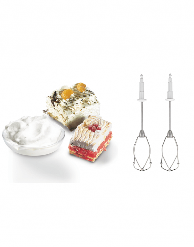 برخی از ویژگیهای این مدل به شرح زیر است: بسیار بیصدا، سبک و مناسب برای کار کردن طراحی زیبا با رنگهای خاص سفید و مشکی قدرت بالای 450 وات برای بدست آوردن بهیترین عملکرد دو همزن از جنس استیل ضدزنگ با فناوری جدید FineCreamer برای بدست آوردن مخلوطی همگن؛ ایده ساخت این محصول افزایش حجم بوده است. این محصول نوآورانه با گلولههای طراحی شده در پایین خود هوای بیشتری را وارد همزن کرده و باعث میشود که مخلوط بهتری حاصل شود. به طور مثال با این همزن سفیده تخم مرغ بیشتری در مدت زمان کمتر بدست میآید. انتخاب سرعت صحیح برای هر آمادهسازی هر غذایی بسیار مهم بوده و این با انتخاب قدرت درست در پنج حالت مختلف سرعت بدست میآید. با دکمه pulse / turbo حداکثر قدرت قابل استفاده خواهد بود. در زمانی که سرعت یا مقدار کمتر مورد توجه باشد مانند بریدن نان، ژامبون یا سوسیس به راحتی با فشردن این دکمه این امکان برای شما فراهم است. قطعات قابل جدا شدن برای شستشوی بهتر |