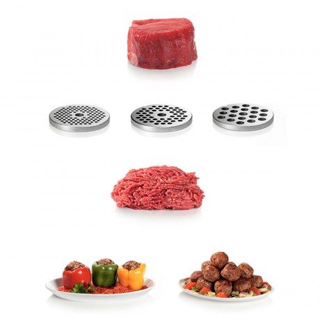 | لوازم جانبی | دیسک 2.7 میلیمتری – دیسک 4 میلیمتری – دیسک 8 میلیمتری – رشته ساز – قیف سوسیس ساز |