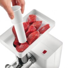 چرخ گوشت بوش BOSCH مدل MFW22010 با توان 1500 وات و با طراحی بدنه ساده به رنگ سفید میباشد . چرخ گوشت 22010 دارای 2 شبکه از جنس استیل ضد زنگ در سایز کوچک و بزرگ بوده که مناسب برای چرخ نمودن انواع گوشت و مواد غذایی میباشد و متناسب با نیاز خود میتوانید شبکه دلخواه را استفاده نمایید.